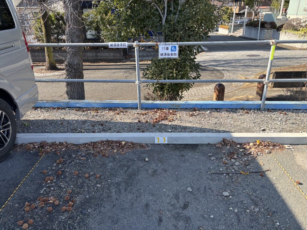 - 目印:「健湧接骨院」と書かれたプレートがあります。