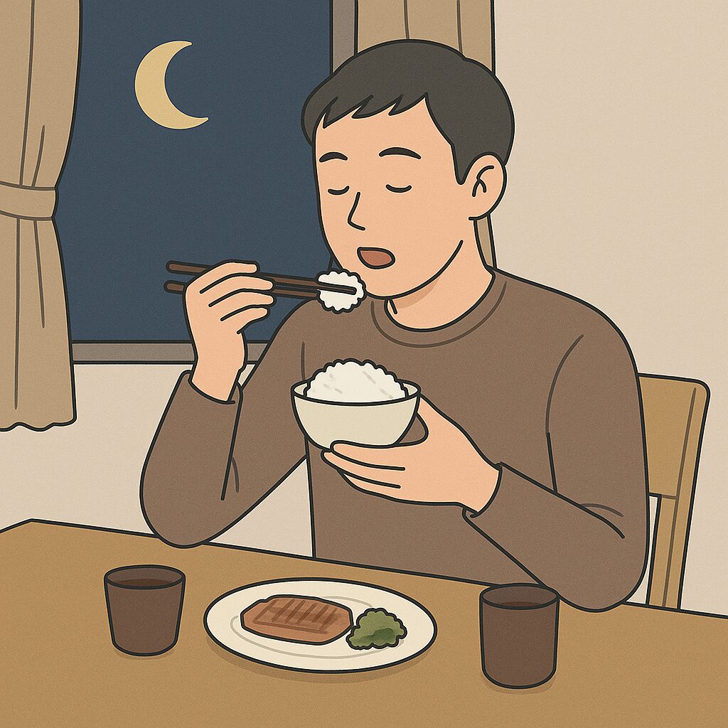 寝具を見直しても改善しない場合、生活習慣、特に「食事の時間」が影響しているかもしれません。