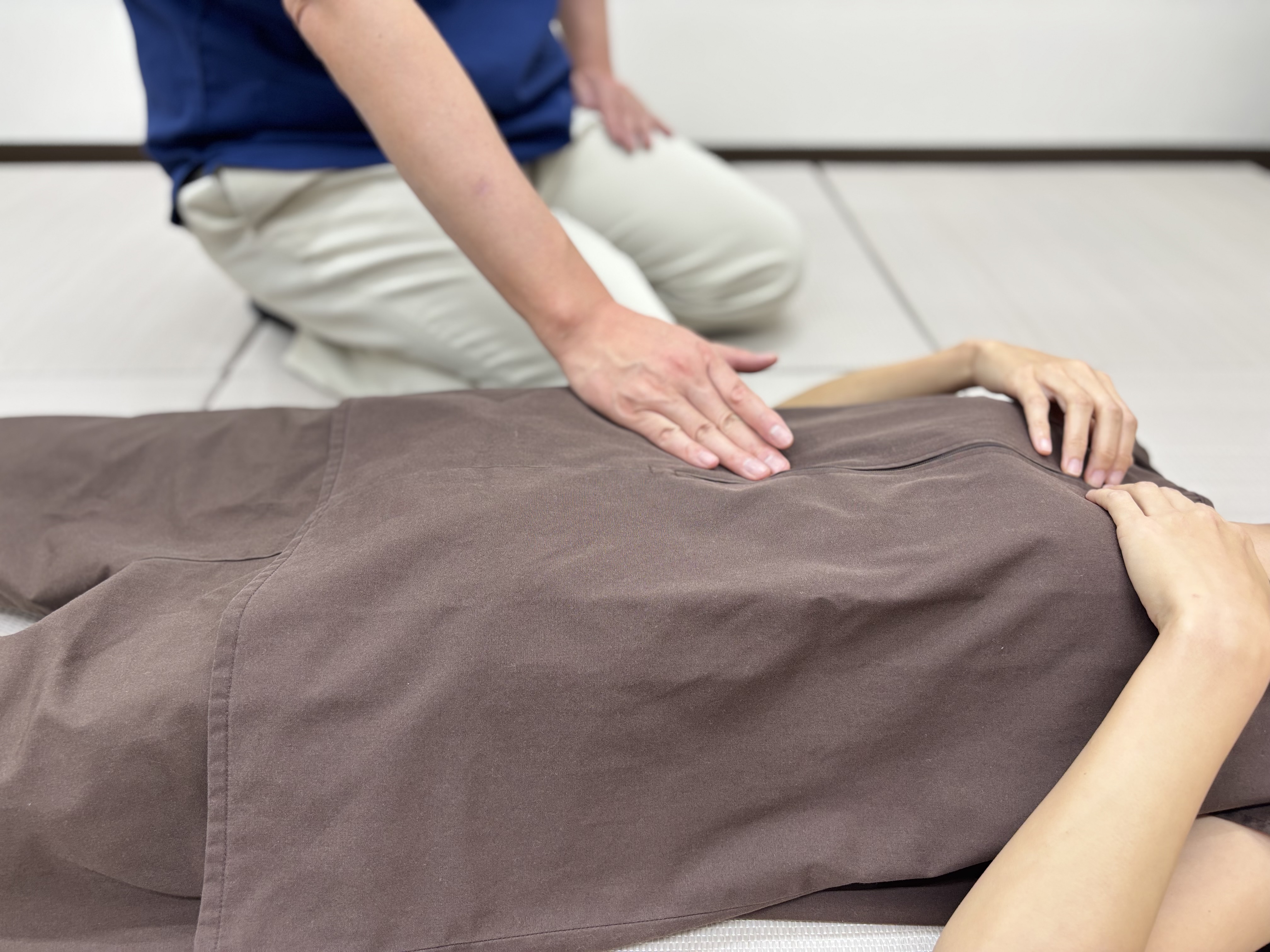 - 系統的触診による原因特定 骨盤の指標となる上前腸骨棘(ASIS)の左右差や、背骨の微細な凹凸、指が「引っ掛かる」筋肉の硬結などを、繊細な手の感覚で見つけ出します。