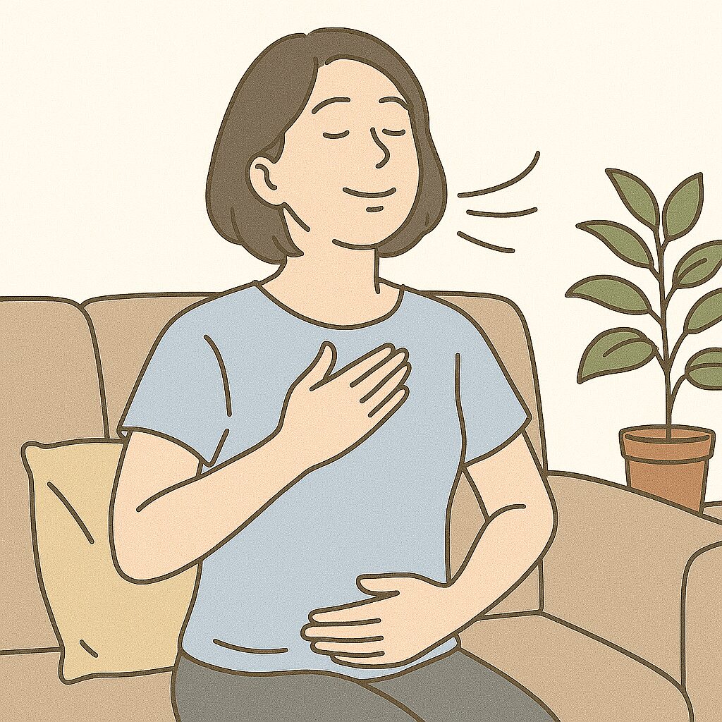 ゴシゴシこするのではなく、皮膚の表面をなでるような感覚で十分です。 - 深い呼吸: 椅子に座るか、仰向けに寝て、鼻からゆっくり息を吸い込み、口からゆっくりと吐き出します。