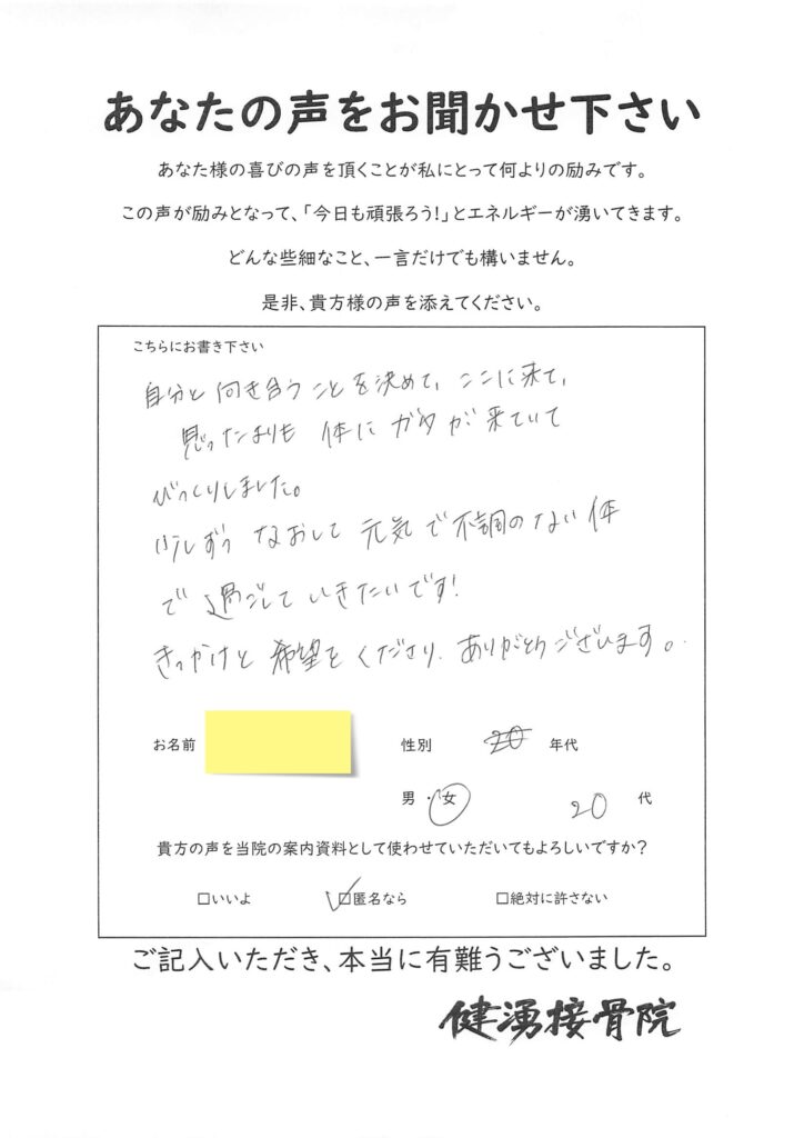 先日【頸椎椎間板ヘルニア】の症状で悩む、20代女性患者様が来院されました。